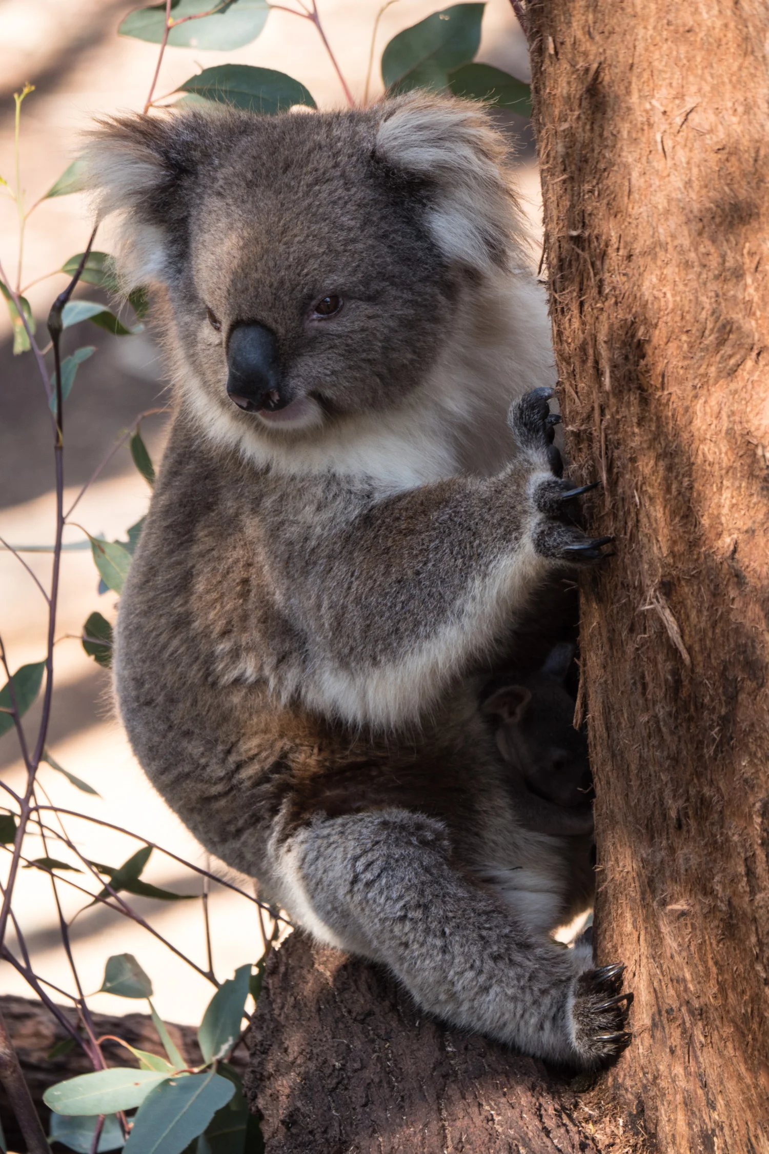 Iconic animals of Australia: Emu and koala at Taronga Zoo, and wild kangaroo, Queensland.