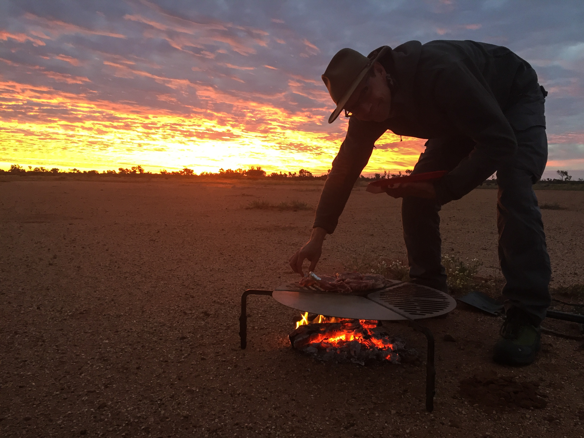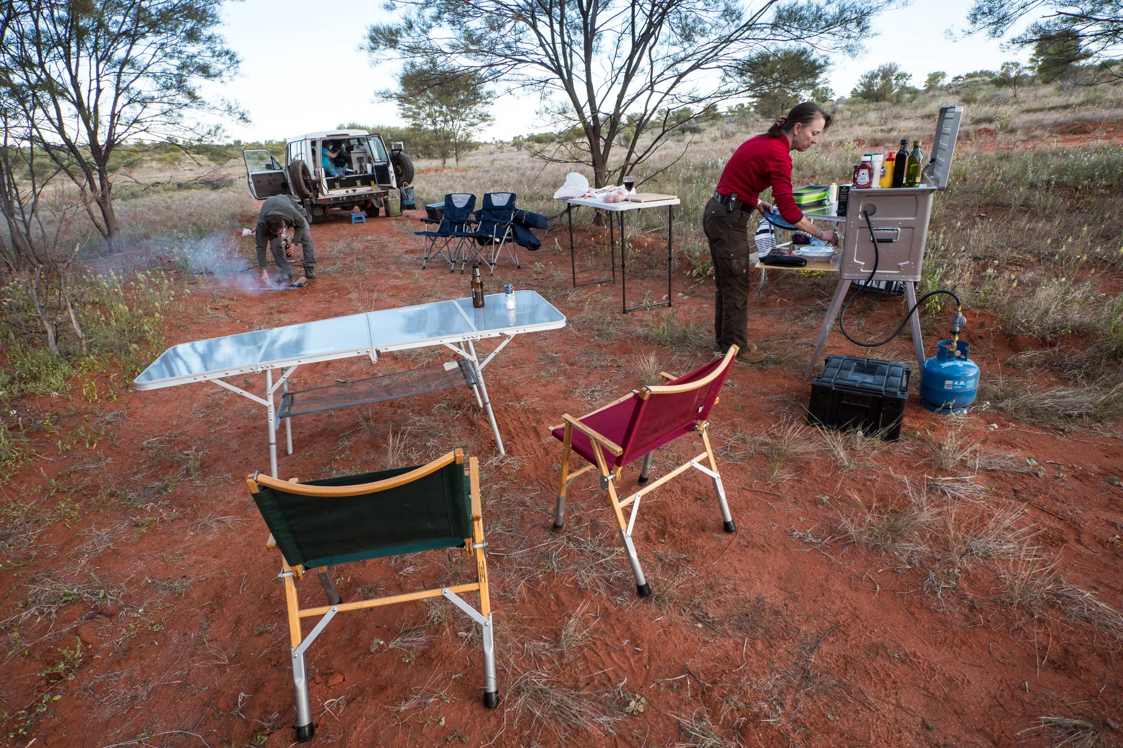 Sometimes there would be a dense copse of coolibah or wattle trees, perfect shade to stop and set up lunch or a quick brew using our volcano kettles. Sometimes the valley would be choked with razor-edged spinifex grass—the bane of outback explorers since Burke and Wills.