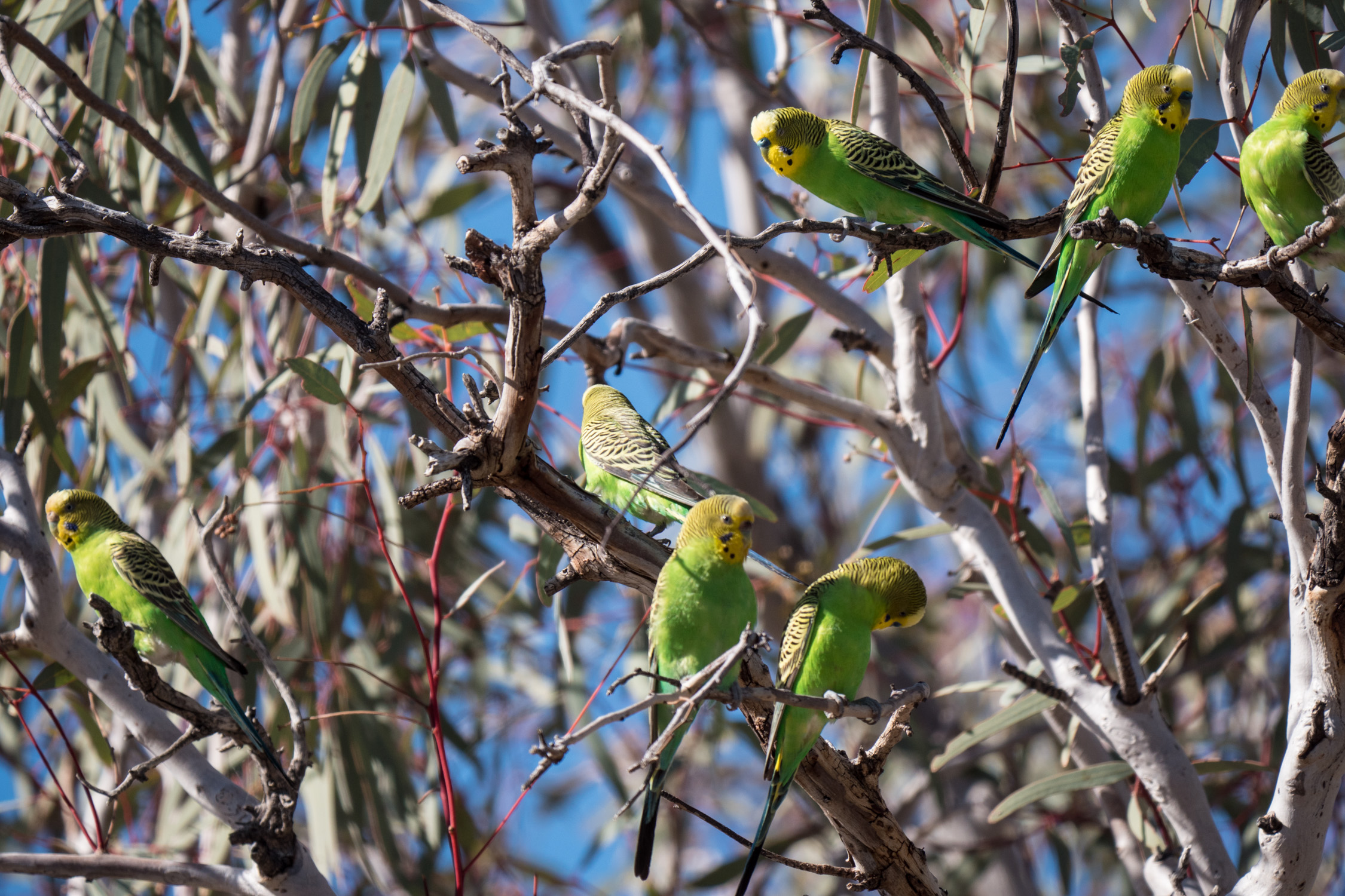 As for birds, Graham quipped that it feels like the world’s biggest pet store exploded. Birds we are used to seeing only in cages are here in their natural habitat. Startling green budgerigars (“budgies”) take the place of sparrows, flying overhead in chattering flocks. Wild, perhaps, but hardly afraid: one landed nonchalantly on Jonathan’s cap as he was trying to photograph it. Startling white cockatoos never failed to elicit double-takes. And of course there were the decidedly non-pet-store six-foot-tall emus and brawny wedge-tailed eagles.