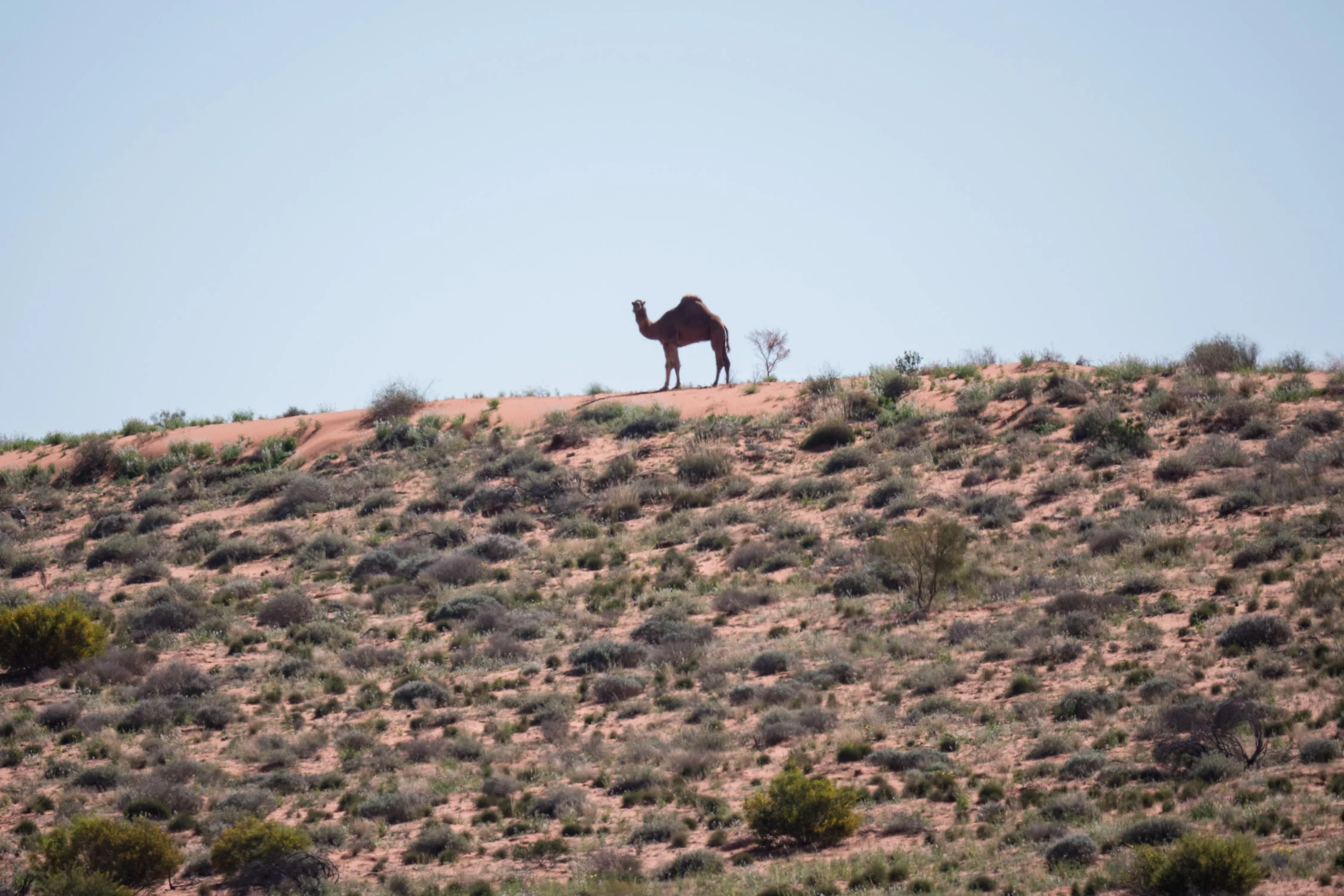 Despite spotting frequent tracks of camels, we saw only one, watching us complacently from a hilltop. Dingo tracks, too, were plentiful, but the animals themselves stayed hidden.