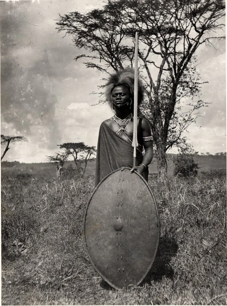 Despite this loss of dominance and territory, the tribe clung to its warrior culture. While the British discouraged (with mixed success) raiding other tribes, for at least the first half of the 20th century a young moran, of the warrior class, was free to test his courage in their time-honored tradition—by facing down and killing a lion while armed with just three implements: a double-edged machete, a spear, and a buffalo-hide shield.