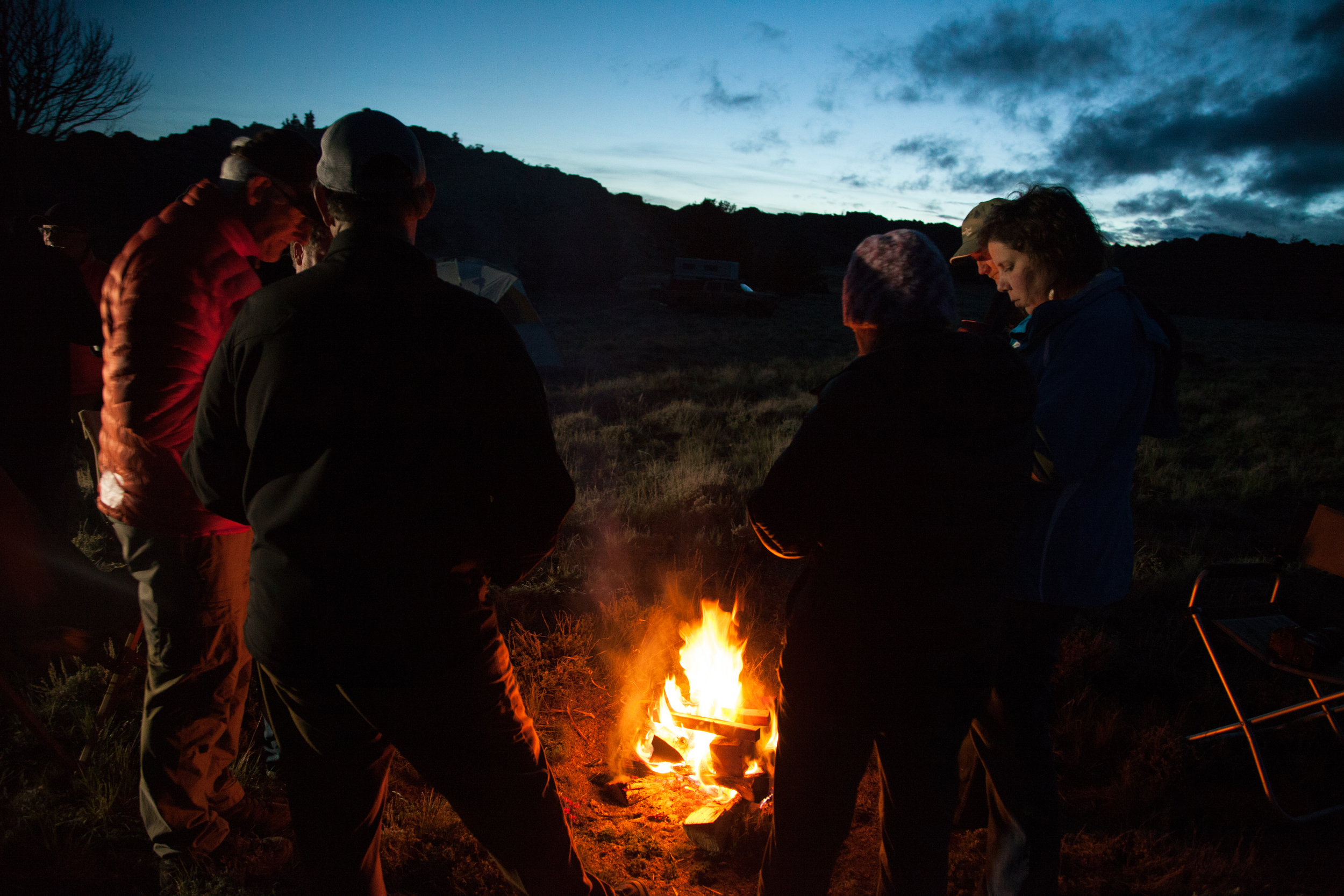 The highlights of the journey for many of us were the camps under the vast stars of the great American West. From top: On the edge of the Red Desert, east of Highway 28 and south of South Pass City; 'smores and bourbon; relaxing after a wet and muddy day at New Mexico's Blue Bird Mesa above Cuba.