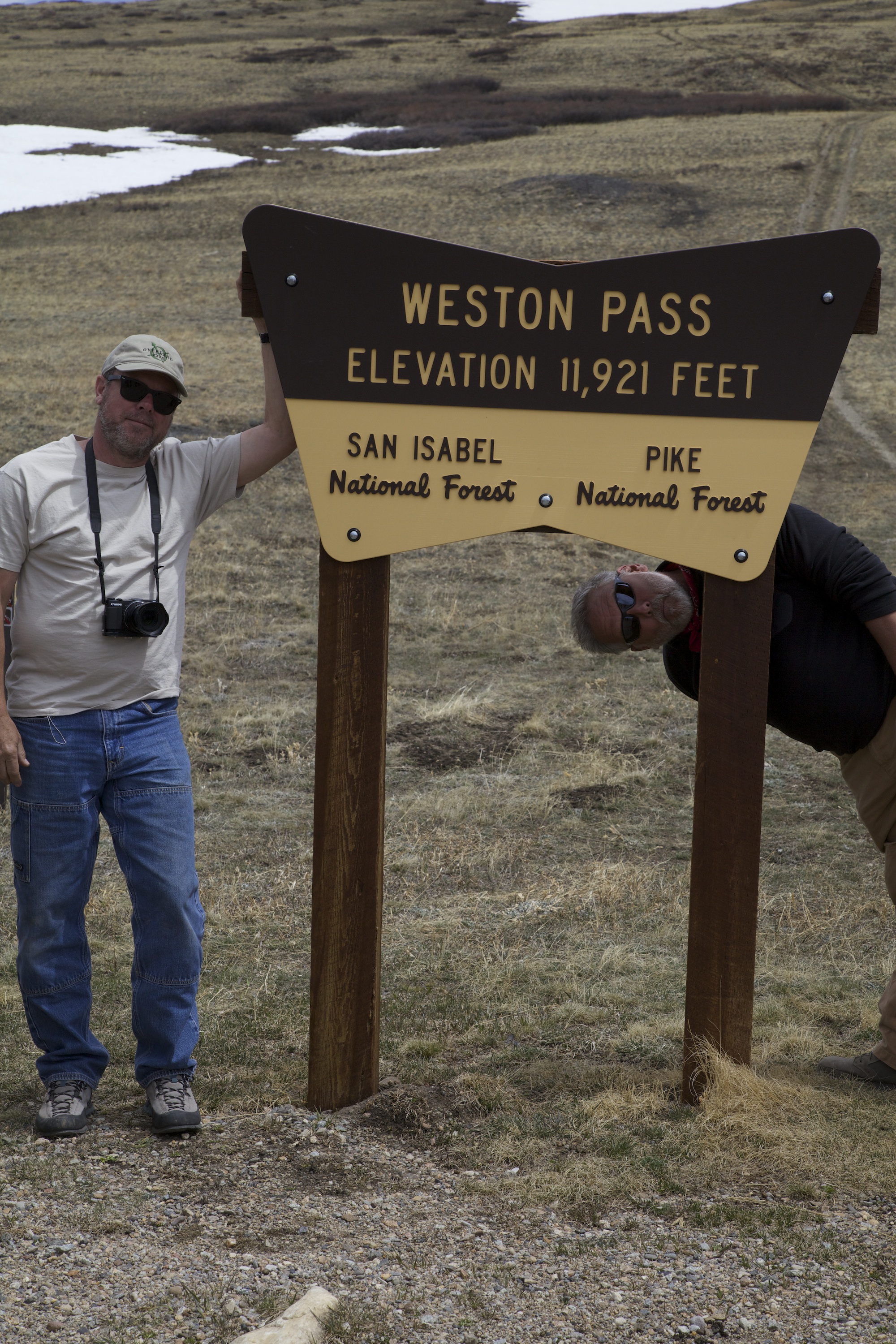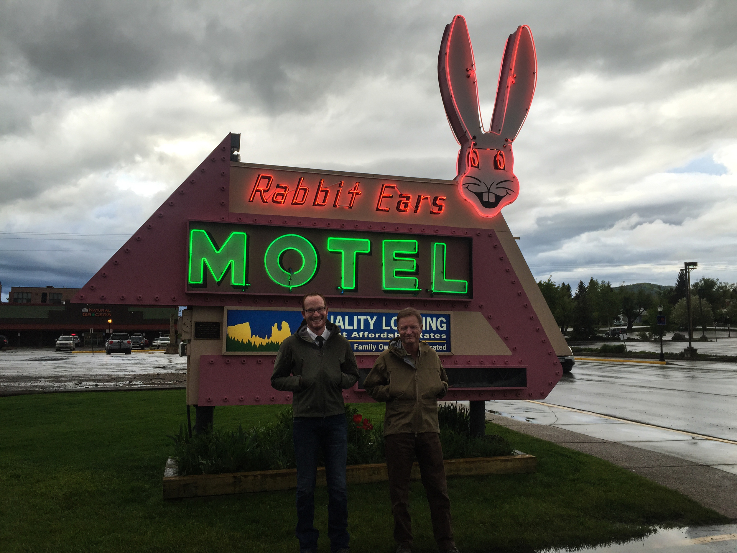 Above: Lunch break along the Alamosa River, Colorado, off FR250, where things got interesting entering southern Colorado’s Rockies and we started climbing over 10,000 feet. Below: We encountered plenty of winter-fall trees and enough snow to break out the MaxTrax as well as to turn us around a few times; posing in front of Steamboat Springs' Rabbit Ears Motel, a gem of a place—priced well, on the Yampa River, and across from the hot springs.