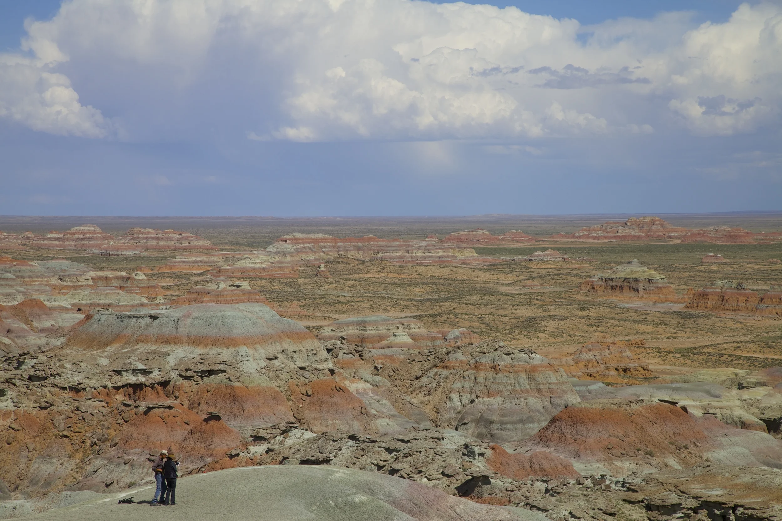 Above: Stopping at one of the most interesting high-desert dune fields in the Red Desert, Wyoming. Below: Aspen Alley greets us in southern Wyoming, just before hitting the Red Desert; red crenellations help give the desert its name; early human hand ax from the region; desert paintbrush blooming after recent rains; the area is crossed by the Oregon Trail.