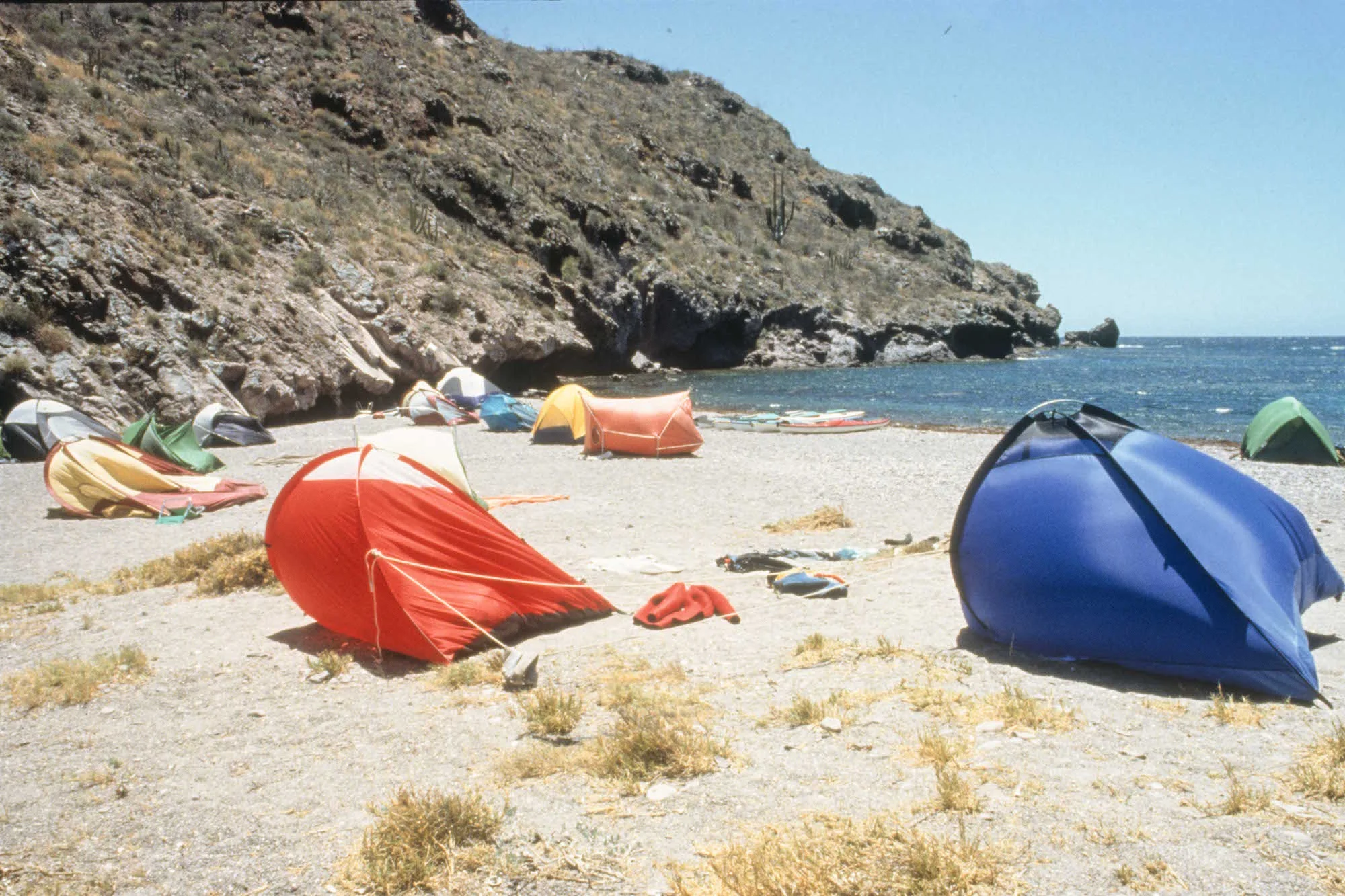 When the article below was shared on Facebook, I got a lot of comments. Many were in complete agreement, and related the writer's own experience with either good or bad gear. But there were several diatribes from those who accused me of being elitist—despite the fact that I listed several companies that make decent tents for under $200—and an extraordinary claim or two about cheap tents performing beyond what I would consider, er, likely, such as standing up to hurricane-force winds. Obviously it would be impossible for me to either prove or disprove such a thing; however, in counterpoint I give you this photo, which I took on the coast of the Sea of Cortez some years ago, when Roseann and I were instructors at the Audubon Institute of Coastal Ecology.