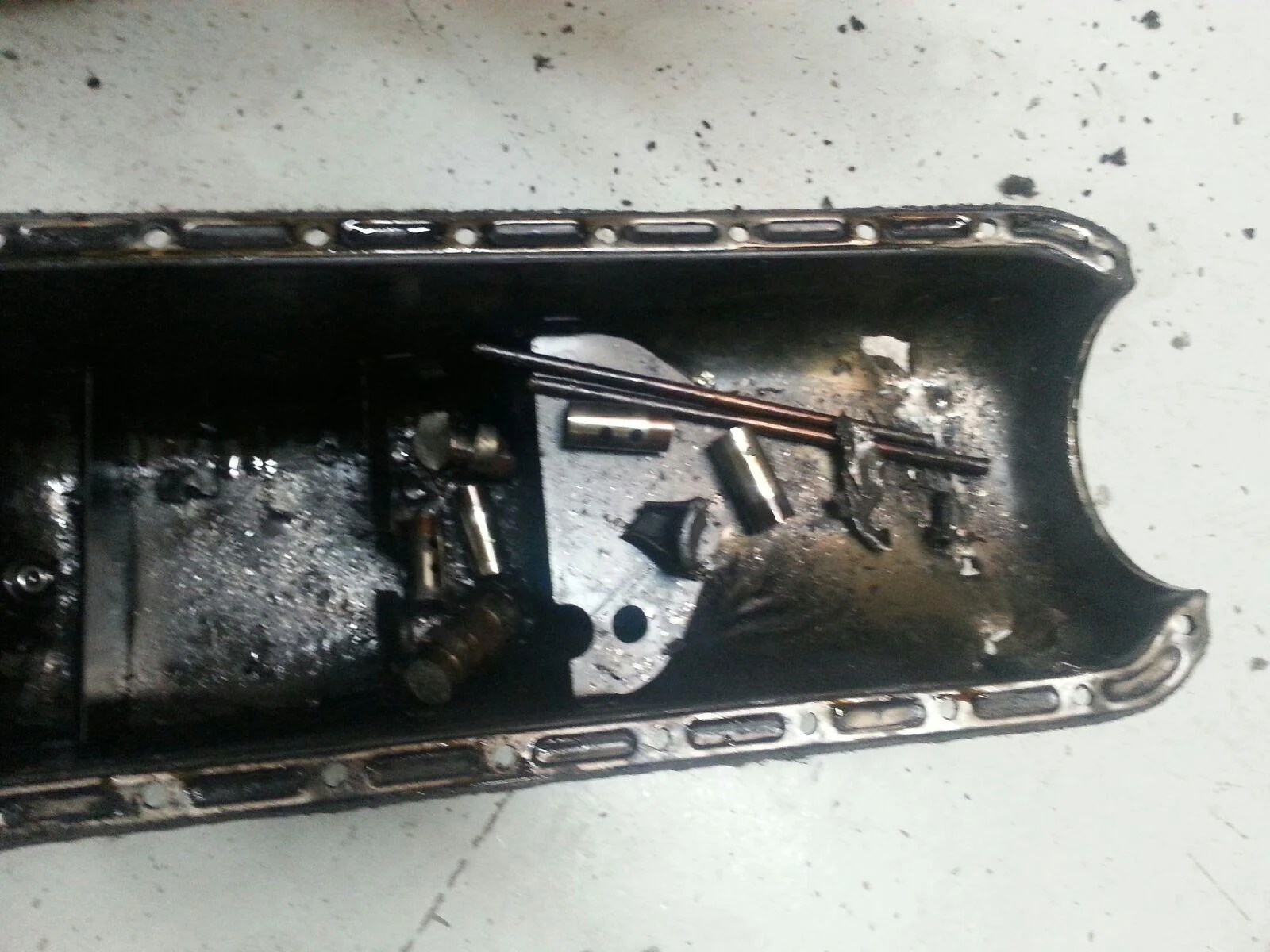 Yes, all those pieces were in the oil pan when he removed it. A rod seized, came apart, and blew the cam into four pieces.