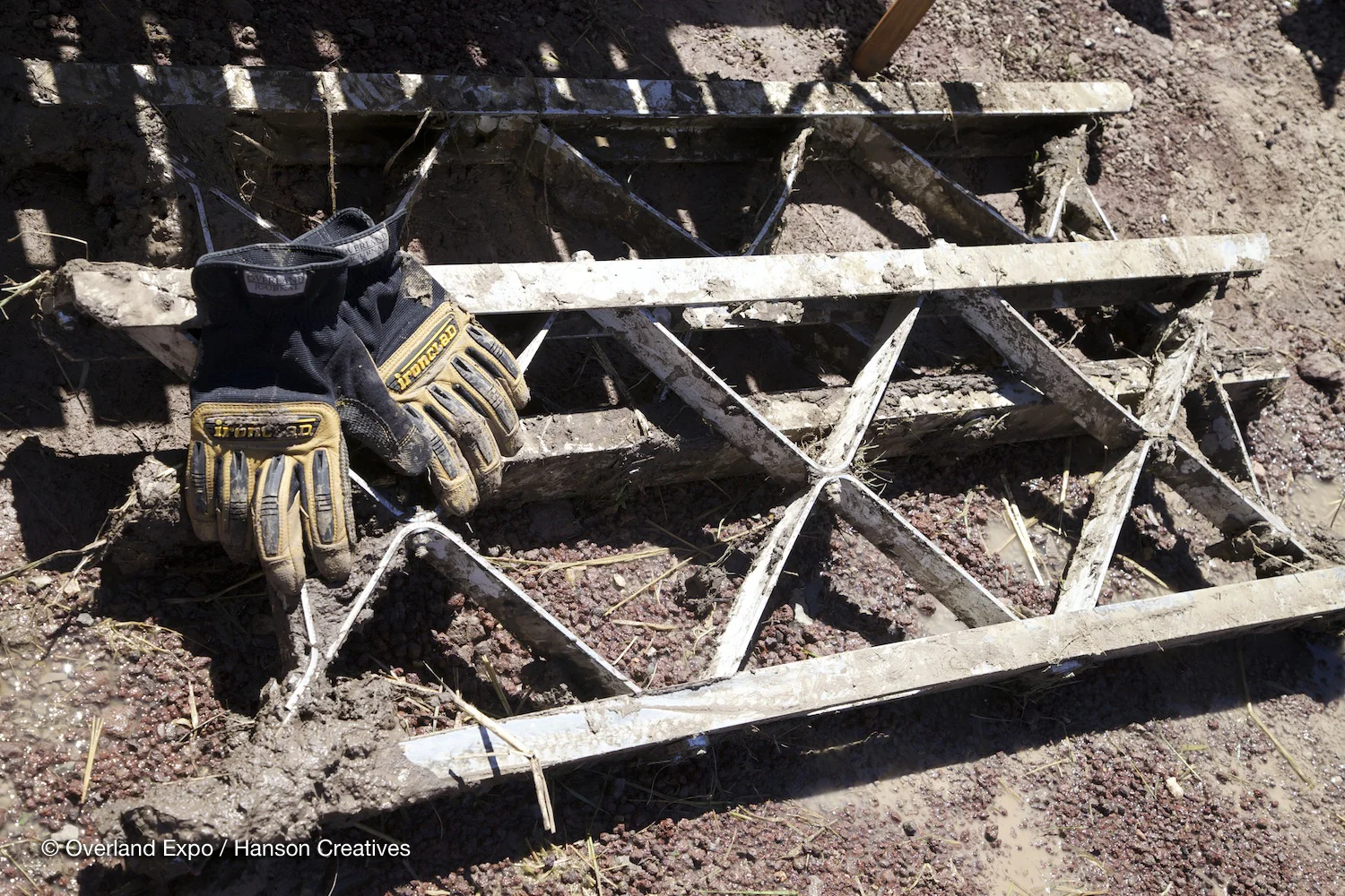 “Oh, no,” said Jeremy. Plastic mats such as the MaxTrax can deform under a heavy load in resilient mud, but the whole point of a bridging ladder is to be rigid enough to support a vehicle over an empty span. The Crux ladders are rated for 7,000 pounds—we were looking at a truck that probably weighed ten times that.