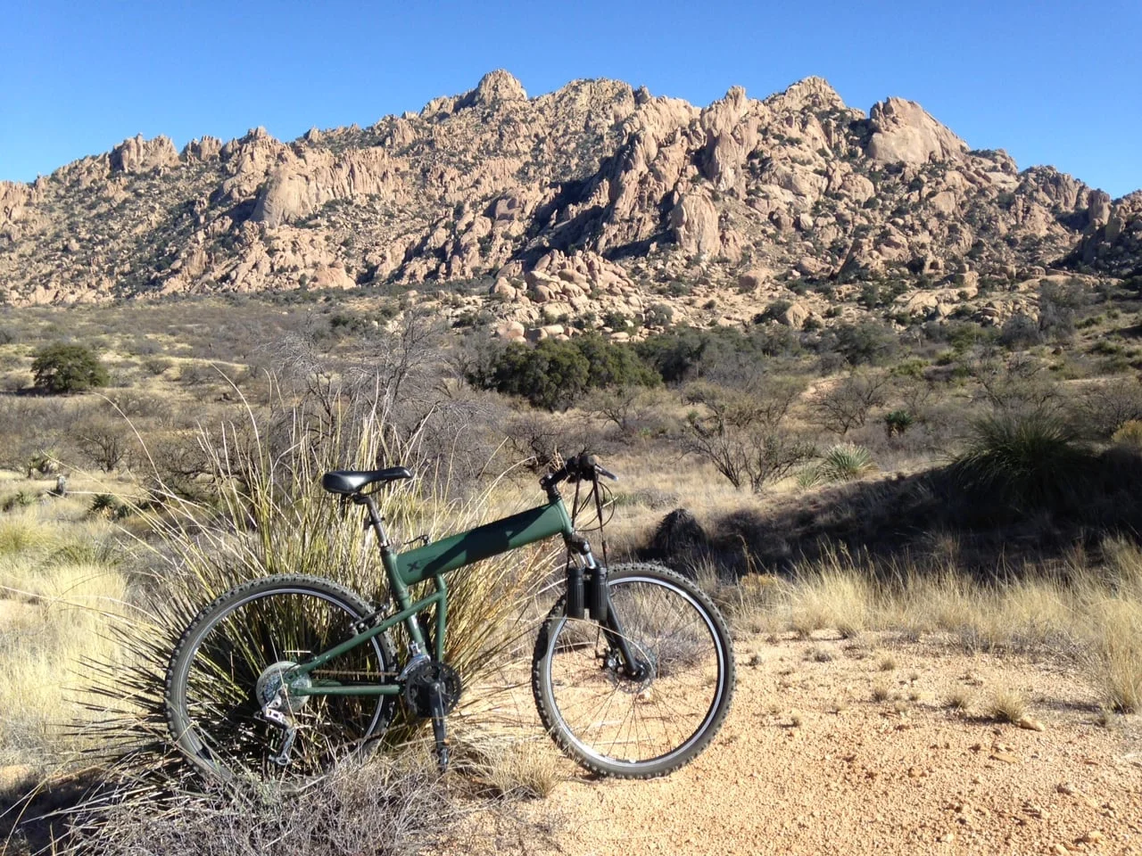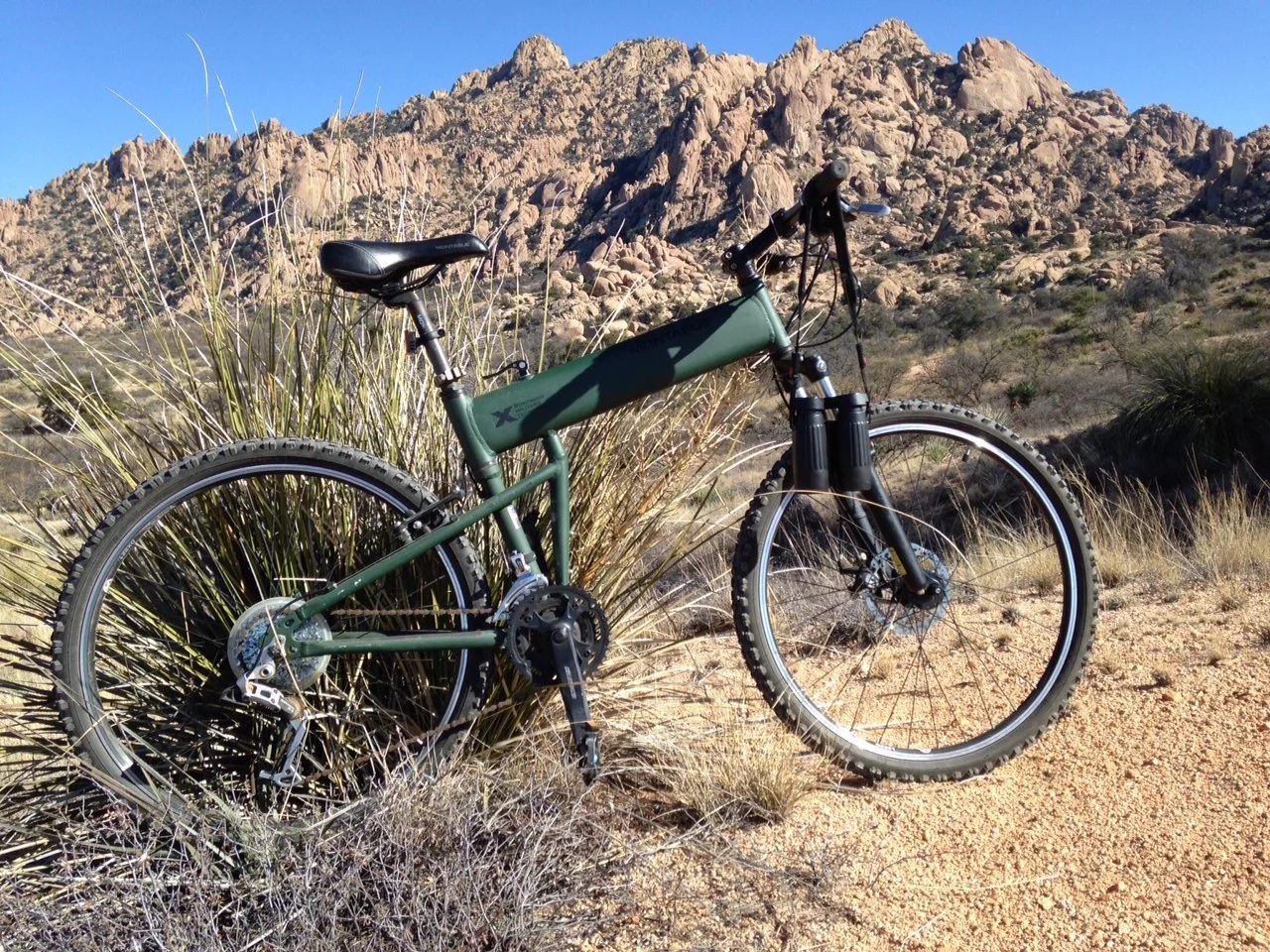 Not so with the Montague Paratrooper. Its wheels are "normal" 26-inchers (in fact a 650B/27.5-inch model is available), and the frame, while eschewing the conventional triangle construction, is no more odd-looking than many rigid-framed models—in fact many people don't realize my Montague is a folder until I tell them, or they ask how I got it to camp in an FJ40 or a camper-equipped pickup with no external racks.