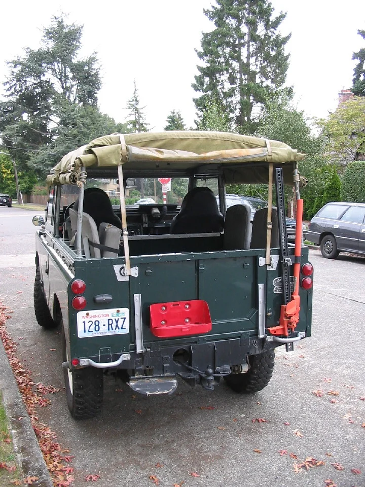 My friends are always sending me photos of vehicles they know will intrigue (or horrify) me. Most Series I, II, and III Land Rovers fit in the former category (although there are exceptions). The one here, spotted by Bruce Douglas in Seattle, looked nearly perfect at first glance—mostly stock, not quite concours and thus drivable without angst, lovely contrast of the dark green bodywork and tan hood, proper skinny tires on factory wheels.