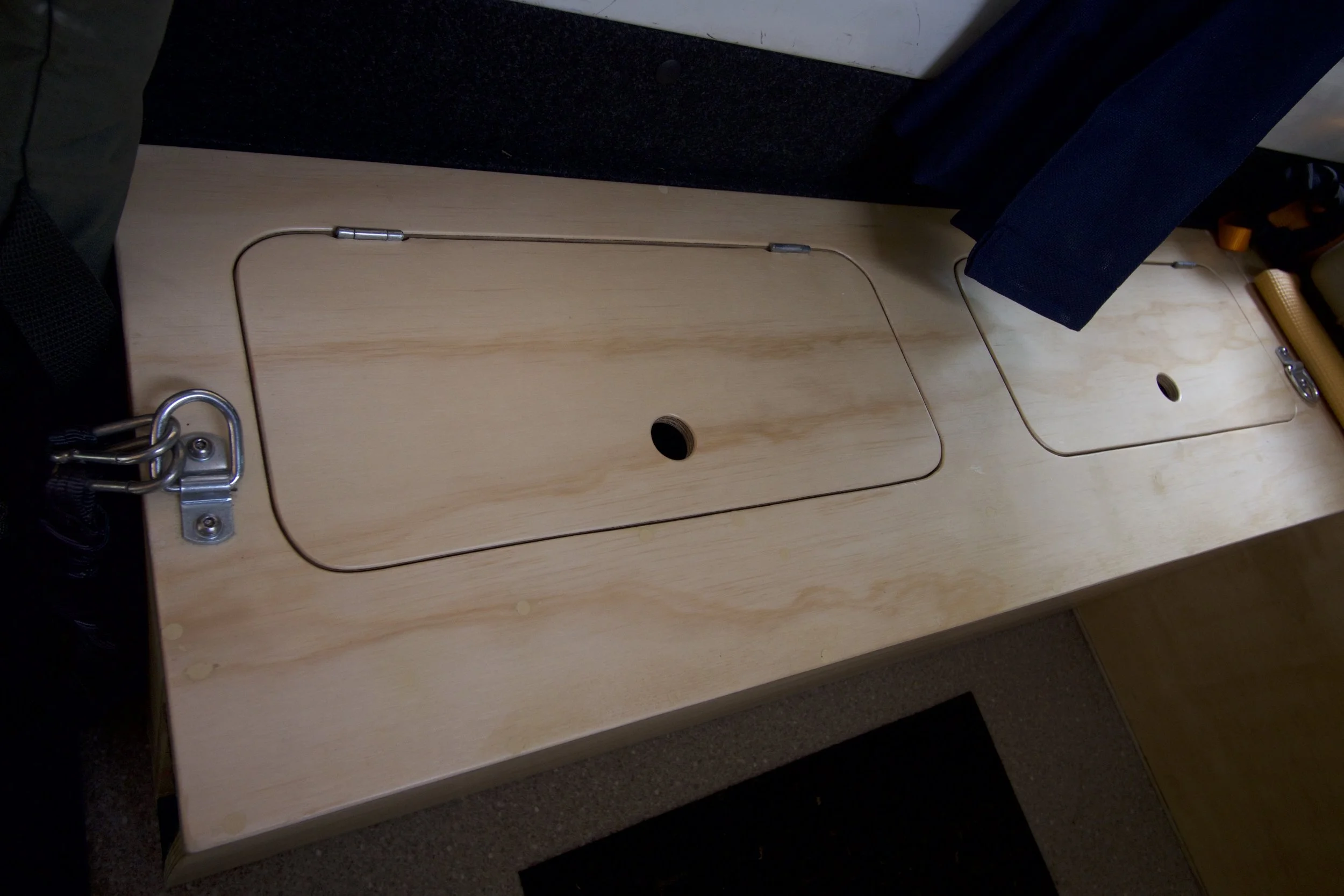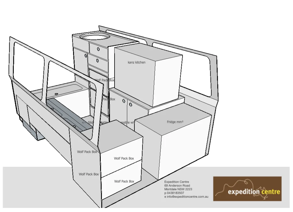With some guidelines from Daniel at the Expedition Centre, who has overseen many such conversions, the layout included a bench on the passenger (left) side of the vehicle, to maintain rear-quarter visibility from the driver’s seat, and a galley and cabinet/drawer stack on the driver’s side, which, uniquely, included provisions for our Kanz Kitchen chuck box/stove so that it could be used in situ, or removed and set up on its legs outside, comprising along with the drop-down Front Runner tailgate table and Eezi-Awn Bat 270 awning an outdoor kitchen for fair-weather cooking.
