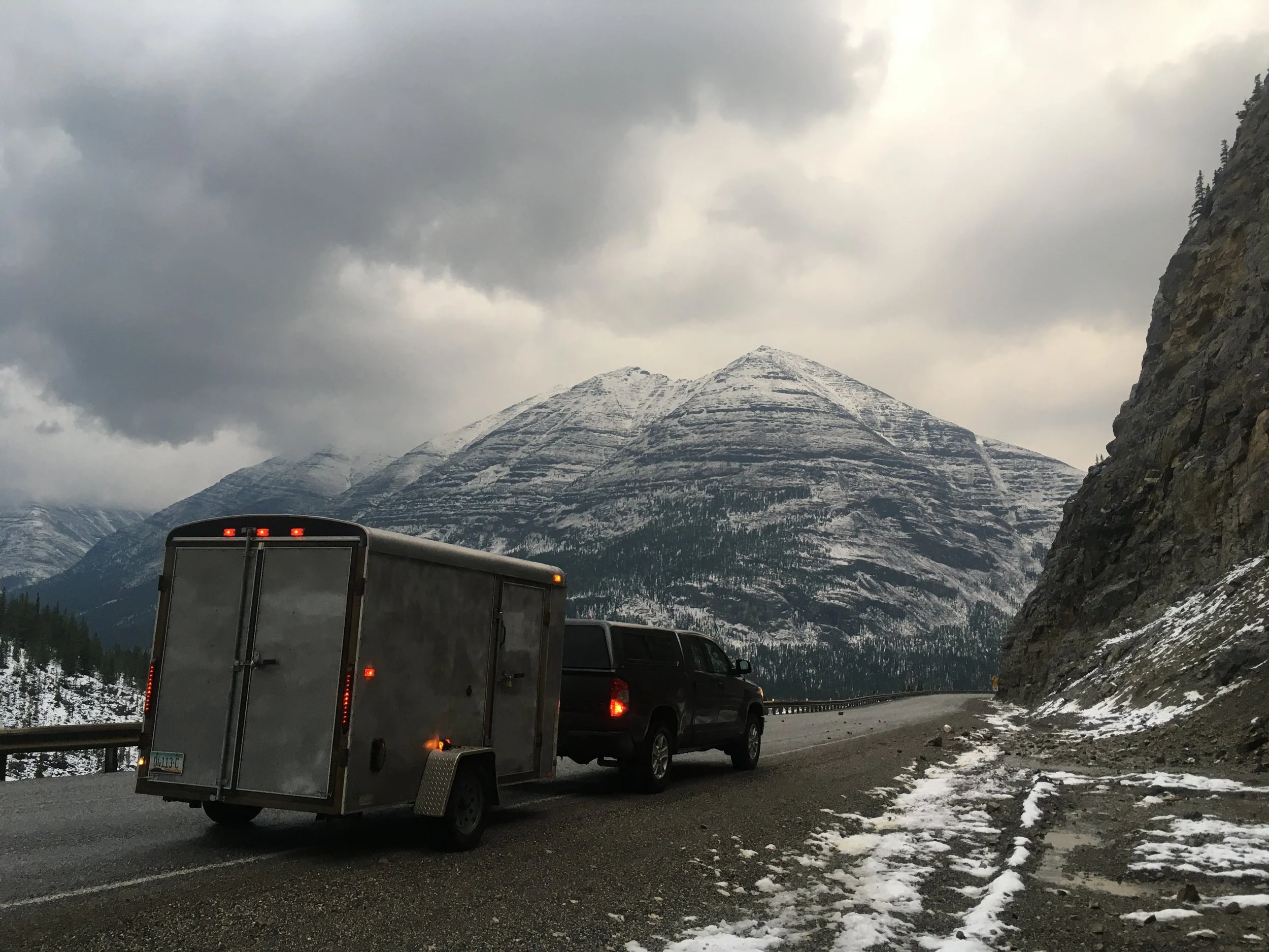 On my subsequent 4,000-mile drive to Fairbanks (solo; Roseann was teaching a field arts class in Wyoming) with a cargo trailer full of household goods, the Dometic did just what it’s supposed to. I had cold beer or wine each night, cold cream for coffee and cold milk for cereal in the morning, and cold cold-cuts for lunch. Luxurious. (Speaking of luxurious, I slept in the back of the truck in one of Born Outdoor’s Badger Beds, about which much more later. In fact I’m still sleeping in it while I sort out the cabin.)