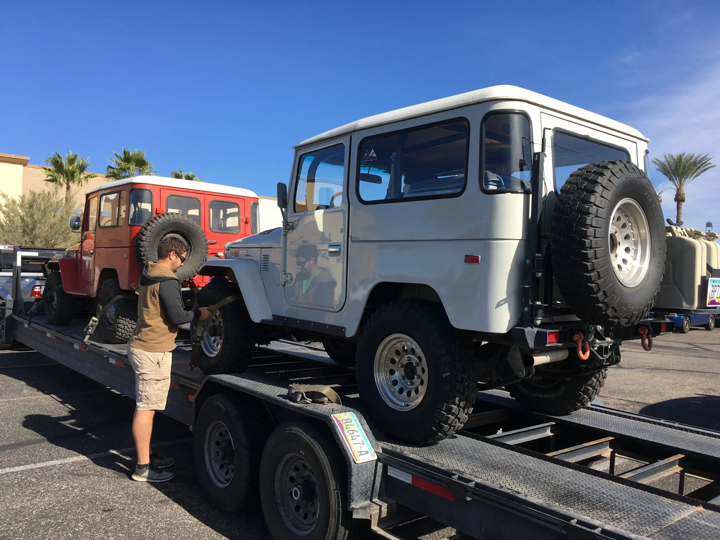 Now on its second F engine, in the last couple of years I noticed a significant loss in power, and inspection revealed low compression in one cylinder. At the same time, the H41 transmission and transfer case have been getting louder and louder with wear, also betrayed by significant slop when lifting off the throttle. So it's time for a bit of refurbishment, care of our master Toyota mechanic Bill Lee, formerly of Tucson but who infuriatingly keeps moving farther away from us, now 500 miles off in Farmington, New Mexico. Recently he called and said he had another FJ40 being trucked to him from southern Arizona, so we added ours to the shipment.