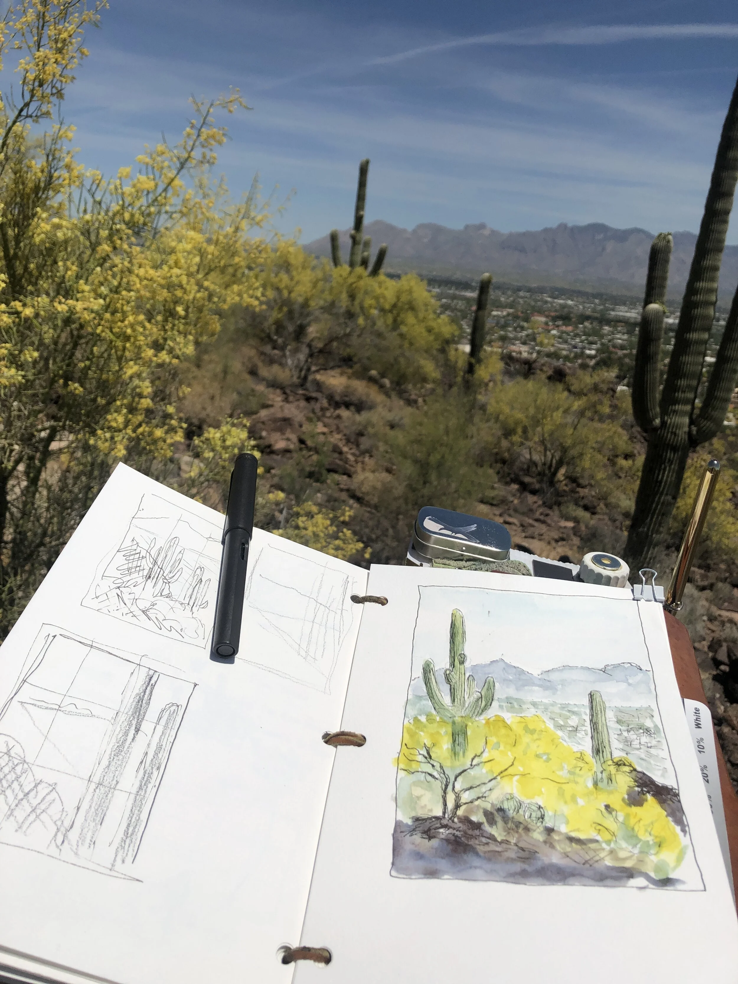 When nature journaling and field sketching, capturing the larger landscape around you can really enhance the scope of your journal, telling us something more about where you were and what you were seeing, in addition to “up close” studies of plants and animals.